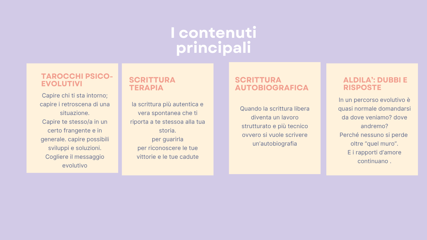 Tarocchi psico-evolutivi e scrittura interiore Imparare i tarocchi: i video scittura terapia: i video il libro il libro il libro